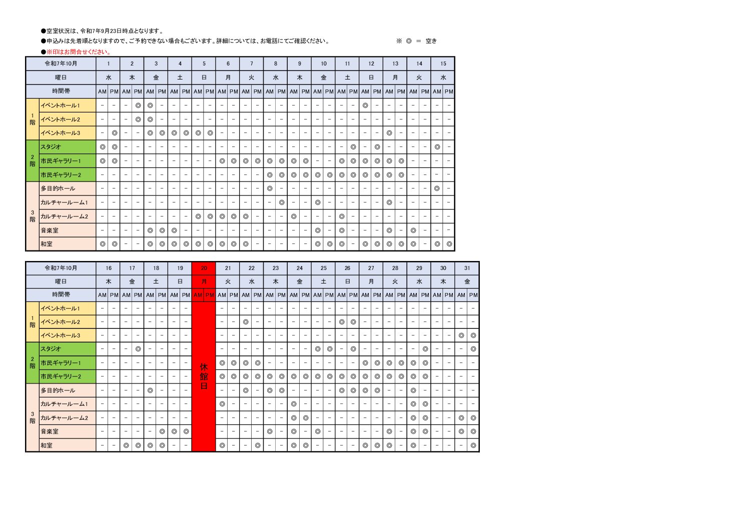 ●会議・各種大会・講習会・発表会・美術展などの開催や展示会などで利用できる施設の貸し出し。